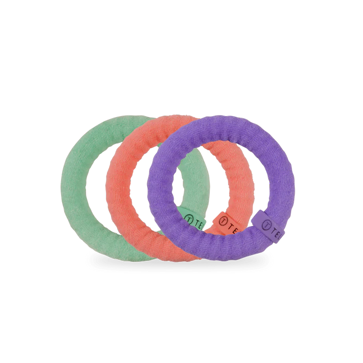 the same game-changing TELETIES coil hair ties now wrapped in soft nylon for added comfort and curl confidence. These fabric hair ties work great with all hair types, but were made specifically with curly and textured hair in mind.